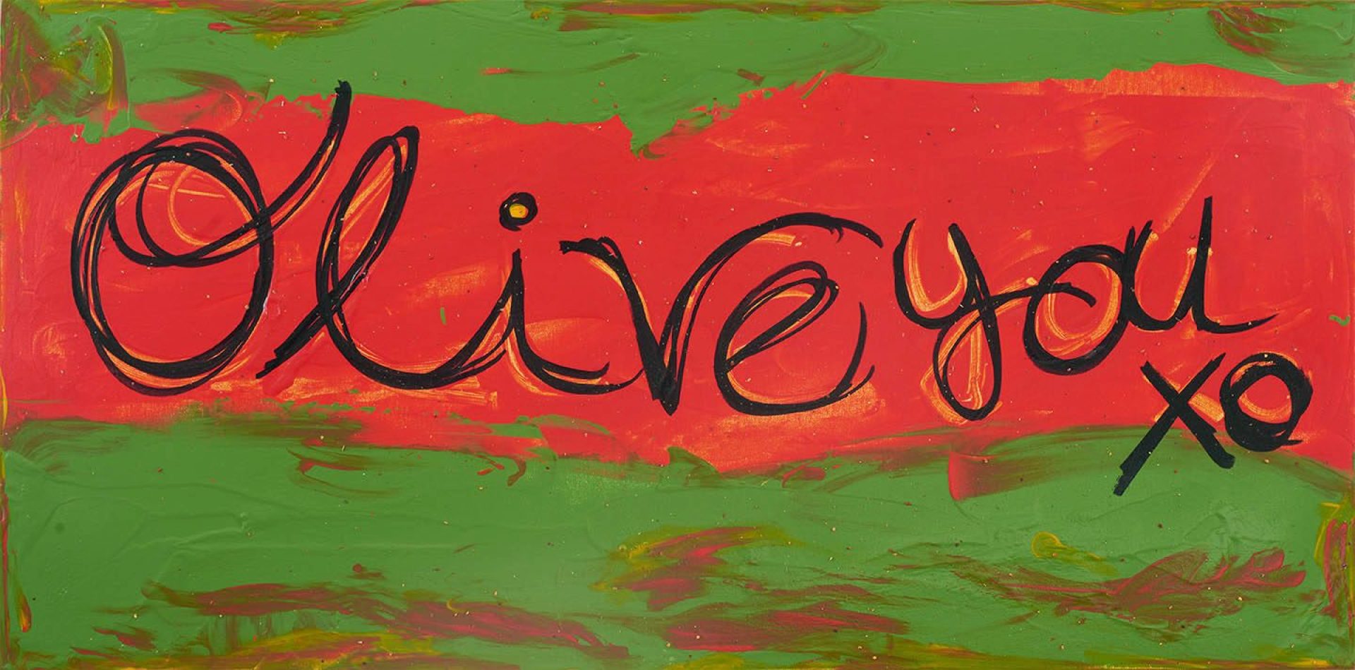 “Olive you xo” is not just an exercise in word-art; it fits into a noble pictorial tradition that sees the pairing of text and image as the key to unsettling the viewer's perception.