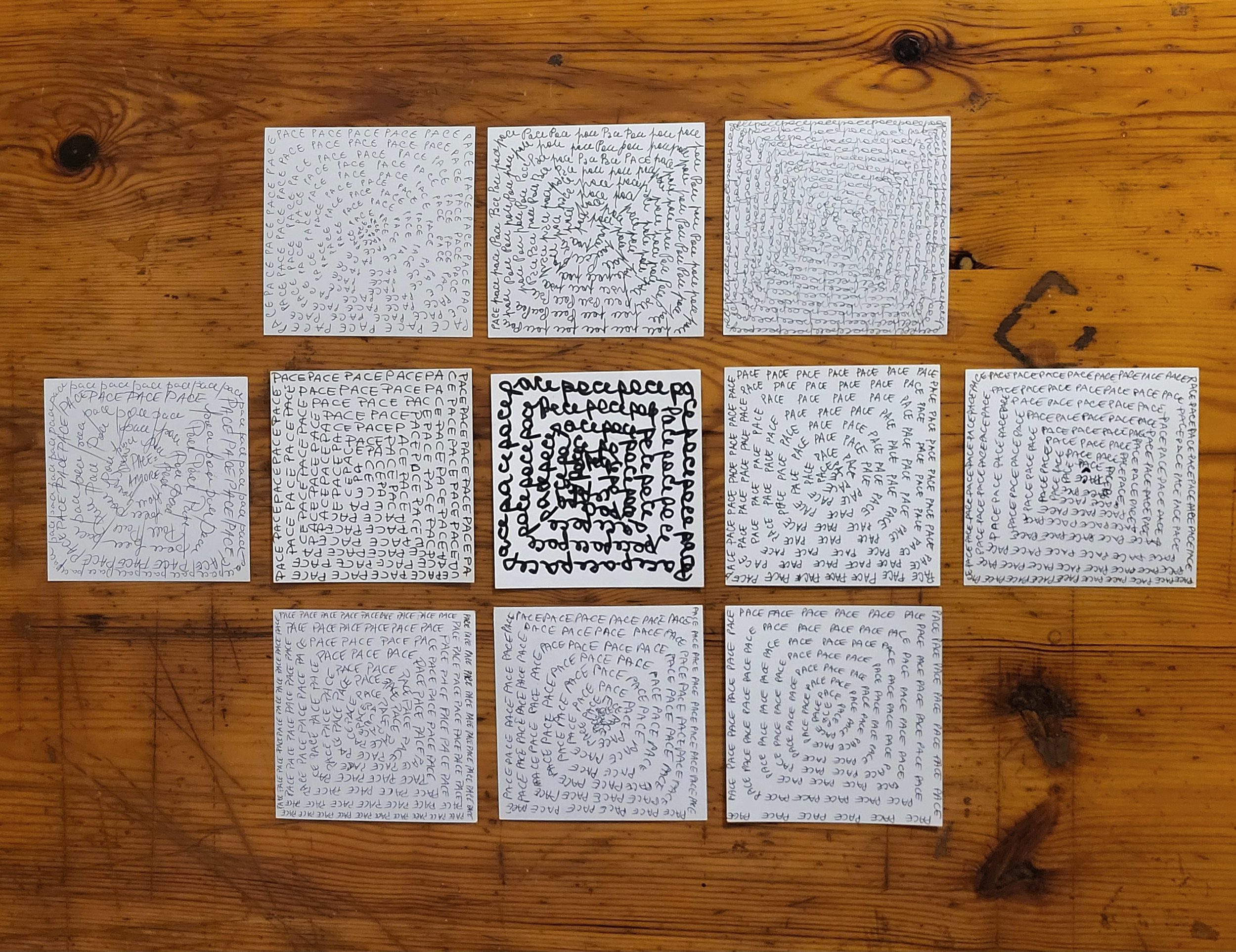 The event will conclude with a brief moment of shared meditation through the repetition of the word PEACE on a sheet of paper. Repetition becomes rhythm, a shared breath, a space of attention.