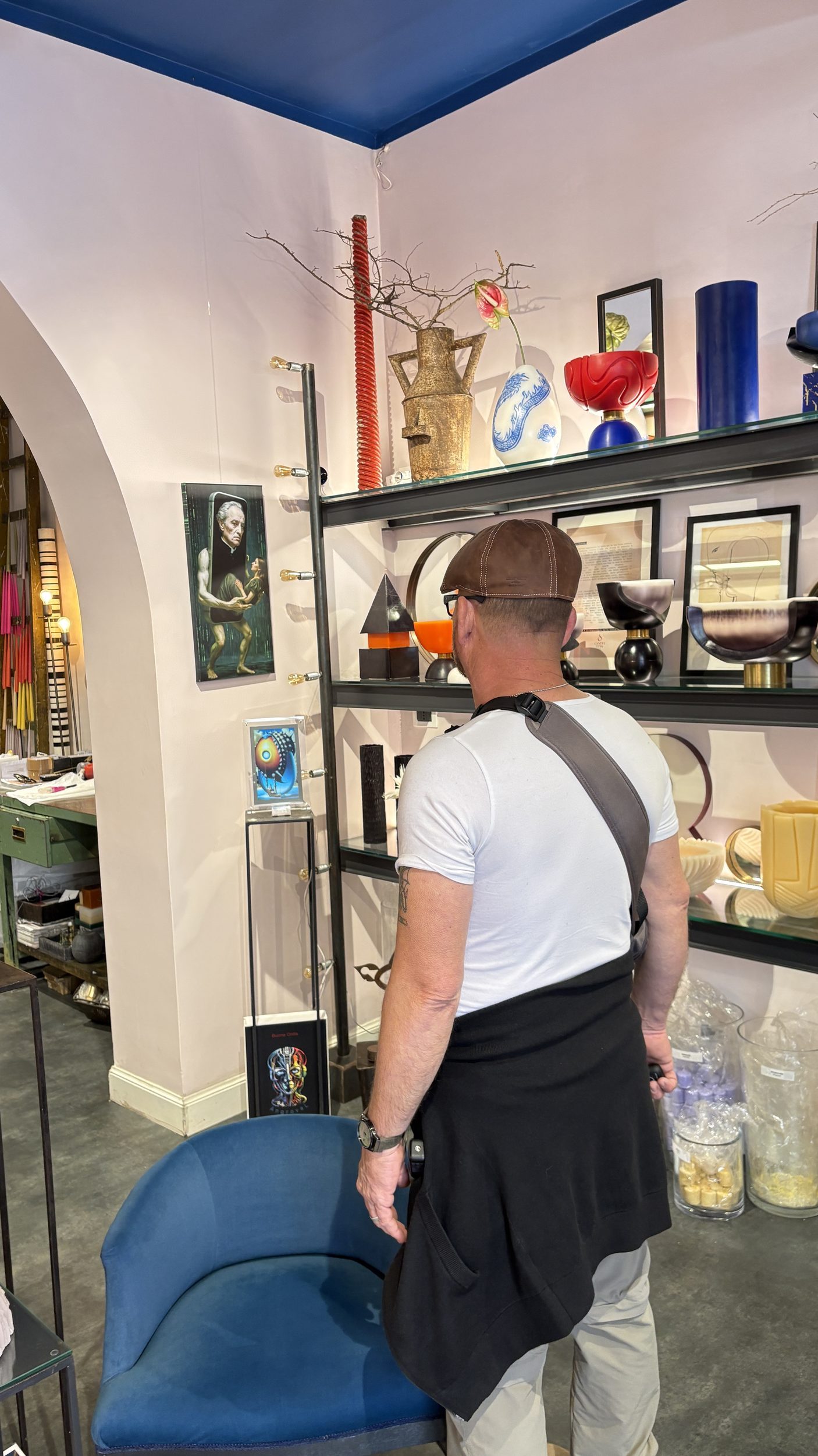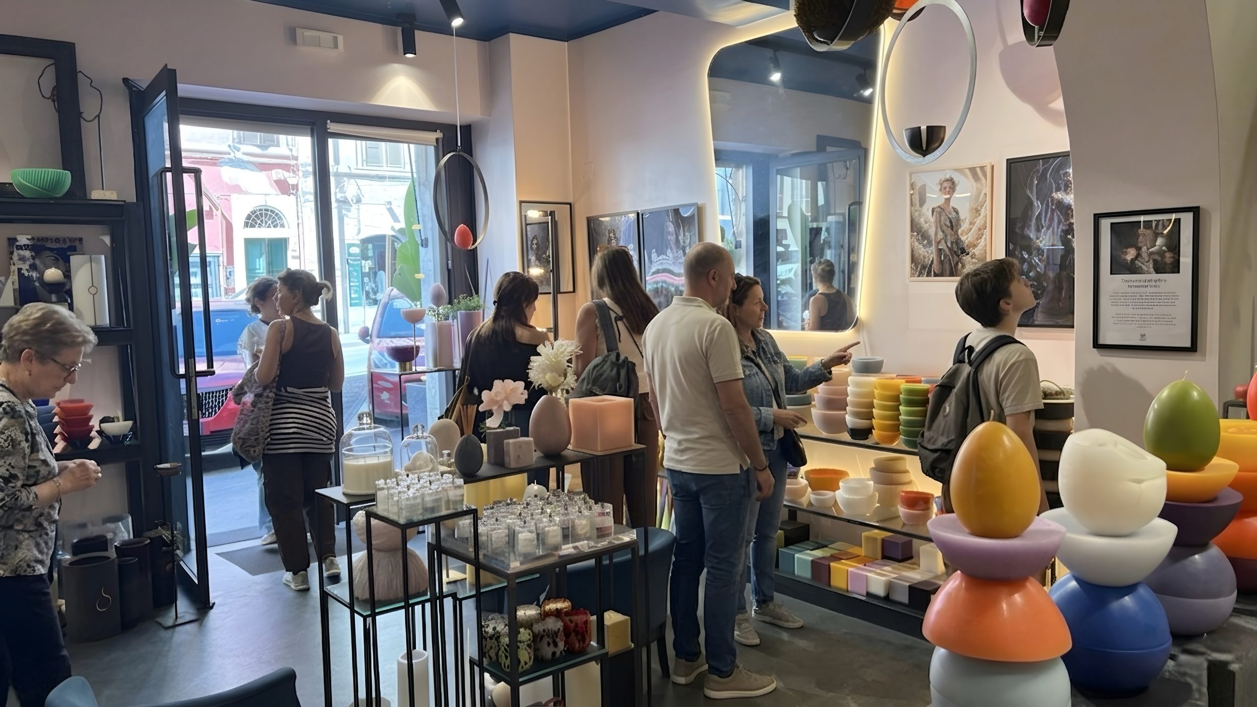 Visitors disperse, becoming absorbed—between image and matter—by the colors and scents of the wax works by Andrea Moraes, accompanying the sensory experience.