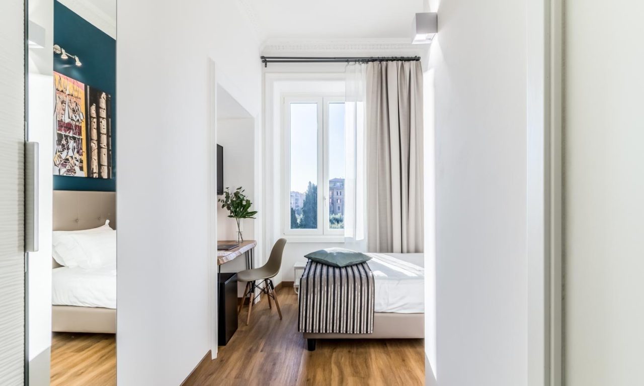 OTTO Rooms is a modern and functional B&B located in Piazza Mazzini, the heart of the elegant Prati district of Rome, on the fourth floor of a period building from the early 1900s.Opened in November 2018 after a complete renovation, it maintains a 9.6 rating from its many Italian and international guests.OTTO Rooms combines the welcome, hospitality and attention of a private home with the comfort of a boutique hotel.The structure was immediately conceived as a purely photographic exhibition space, the OTTO Gallery, where exhibitions of Italian and foreign authors are set up throughout the common area and within its 6 large rooms.A pioneering concept of hospitality that allows guests of the structure to enjoy the works exhibited in the large common areas for free, and at the same time conceived as a real "photographer's home", where all fans of this new art can meet to share , confront and grow through all the events organized and proposed.The style is essential but elegant, every detail has been studied ad hoc to make our guests feel served and pampered, like at home.