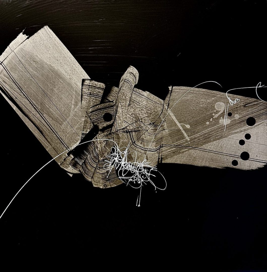 Massimo combines classic calligraphic techniques with stylistic experimentations which are embellished by the use of innovative materials such as resins, varnishes, and unconventional media. Moving away from the stereotyped use of paper and canvasses, he is always on the look-out for recycled materials to which he likes to confer a new identity.