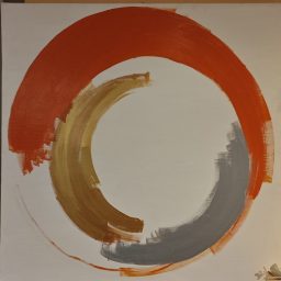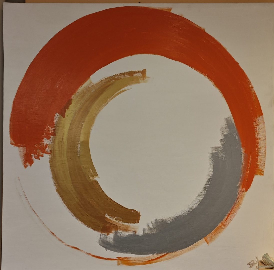 Da quel momento, il cerchio incompleto si è impresso nella mia memoria come un’ossessione. Per mesi ho continuato a rivederlo, finché, tornato a Roma, in un altro pomeriggio d’estate, ho sentito l’urgenza di riprodurlo. Ho costruito un telaio, steso i colori, e con tre tratti distinti di spatola ho lasciato che quell’immagine prendesse forma. Solo in seguito ho scoperto che quello che stavo dipingendo era un ensō, simbolo di pienezza e vuoto, di inizio e fine, di istante e continuità.