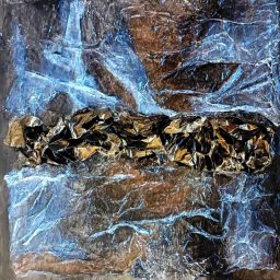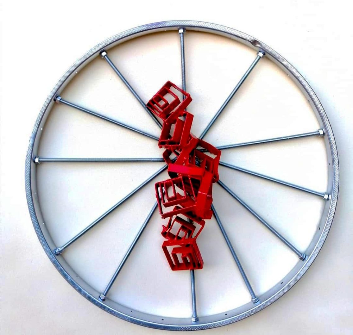 Le opere escono dalla destrezza delle sue mani, le superfici prendono forma, diventano mare, spazi siderali, terre di ampi campi dai quali emergono le allegorie dei fatti che prevaricano il comune pensiero. Le catene, il filo spinato, gli spaghi, la lucentezza della resina, i riflessi degli specchi… debbono essere visti come riconoscimento del disagio sociale e personale di fronte al momento attuale. Proprio per questo le catene si aprono e svincolano ali di libertà, cuori perennemente innamorati della vita, mare e cielo che accolgono la luce del sole (Paolo Viterbini).
