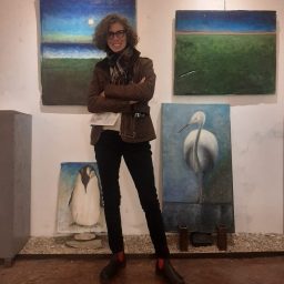 Nata a Roma si diploma nel 1980 presso il I Liceo Artistico di Via di Ripetta, successivamente, mentre frequenta la facoltà di Architettura e la Scuola Libera del Nudo, approfondisce l’interesse per il corpo umano, che avrà parte rilevante nella sua opera di pittrice. La ricerca costante di nuove tecniche si evolve velocemente, dal pennello passa alla spatola, dal colore al bianco e nero per poi tornare alla policromia e di nuovo al monocromatico con l’uso del bitume. Dalla tela alla Juta e successivamente al cartone, che rappresenta la sua fase attuale. Raccogliere cartoni destinati al macero, portarli nel proprio studio e dipingervi sopra, significa fissare la vita su ciò che sembra aver esaurito la sua prima funzione e che sarebbe destinato al macero o a un processo chimico di riciclo. In questo modo diventano testimonianza di una “esistenza” precedente che, attraverso il riutilizzo nel trasformarli in dipinti diventeranno eterni… come è eterna l’Arte in sé…“La mia è una continua ricerca, un viaggio che, anche quando sembra aver raggiunto la meta, mi trova pronta a ripartire per nuove esperienze espressive, nuove tecniche, nuovi mondi … ogni nuova esplorazione non è mai un cambiamento ma una trasformazione del vissuto precedentemente, cosciente della mia irrequietezza , questa eterna inquietudine che non mi farà mai sentire appagata”.