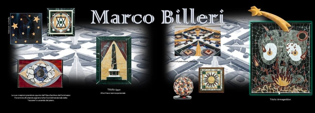 Nasce a Roma il 6 Ottobre 1968 e nutre da sempre un grande interesse per la storia e per l’arte antica. Associate a una manualità spiccata, queste passioni lo inducono presto a cimentarsi nella manipolazione di materiali ispirati al passato. Nel 2011, una malattia invalidante segna la svolta da artista, che lo porta a immergersi giorno e notte nel suo più grande progetto: sviluppare da autodidatta uno stile originale di mosaico ad intarsio, che in sintesi si può definire scultura ad intarsio. Le sue creazioni prendono spunto dall’Opus Sectile e dal Commesso Fiorentino, già noto dal IV secolo A.C., sfruttando appieno la forma tridimensionale delle “tessere” e uscendo dal piano. Il marmo e le pietre sono intagliate a mano libera mediante un trapanino con frusta, lame al diamante e macchinari da modellismo. Le composizioni sono realizzate interamente a mano sulla base di disegni inediti ideati e tracciati dall’artista, che sagoma ogni parte, con grande precisione allo scopo di ottenere gli effetti cromatici desiderati.