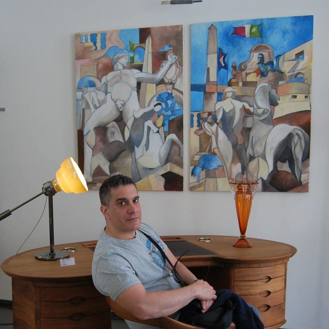 Nato a New York nel 1964 da genitori italiani, compie gli studi in Italia, in un limitato ambiente di provincia, vivendo l’estate negli U.S.A. in un mondo più ricco di stimoli e di affetti.Nei lunghi inverni italiani, spesi nella routine casa-scuola, l’unica evasione è la fantasia e la matita è lo strumento per concretizzare i propri sogni, avvicinandosi cosi al mondo dell’arte che tanta parte avrà nella sua vita. Dopo la maturità artistica conseguita a Taranto, si iscrive a Roma alla facoltà di Architettura. Roma, felice sintesi tra i due mondi separati dell’adolescenza, è il magico luogo del primo vero apprendistato nella faticosa ricerca di se stesso e delle ragioni della propria arte.Nel periodo figurativo-simbolista, le sue tele popolate di tante papere bianche che sciamano per le piazze, vicoli, che si stagliano solitarie in attesa, sono simbolo di candore e di ingenuità, rispetto e semplicità; le papere mute ed attonite testimoni del quotidiano, rappresentano tutto quel che di buono e onesto può esserci in noi, sono, nella dimensione del sogno, una proiezione di candore e libertà, reminiscenza di una nostra perduta “età dell’innocenza”.Chiusa questa fase la ricerca di Alexander trae linfa e vitalità dai suoi studi in architettura per aprire la nuova fase figurativo-neocubista, tutt’ora in atto, dove le architetture delle città si fondono ed avvolgono i sensi in nuove magie, con toni caldi in un moderno stile figurativo, dove l’astrazione si scioglie in meravigliosi incantamenti metropolitani.