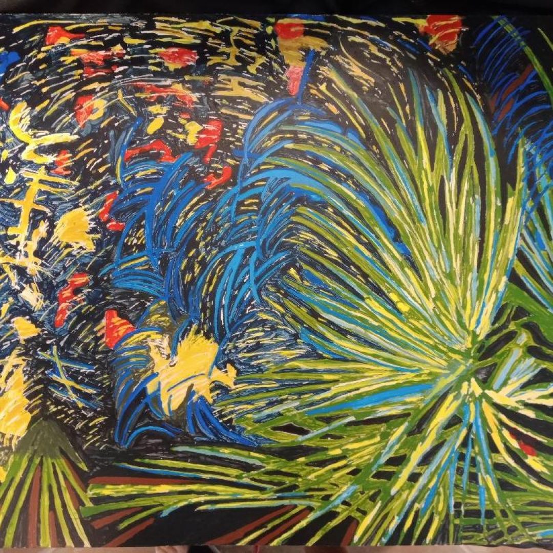 - Malinconia: realizzata con acrilico, sabbia di mare e segatura, esprime uno stato d’animo legato a una delusione sentimentale. I colori tenui e le texture evocano una città desolata.