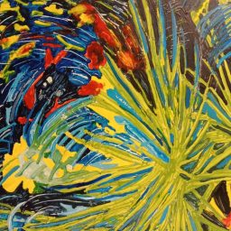 - Acrilico, acquerello e olio: alterna fluidità e densità del colore per evocare stati d’animo contrastanti