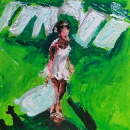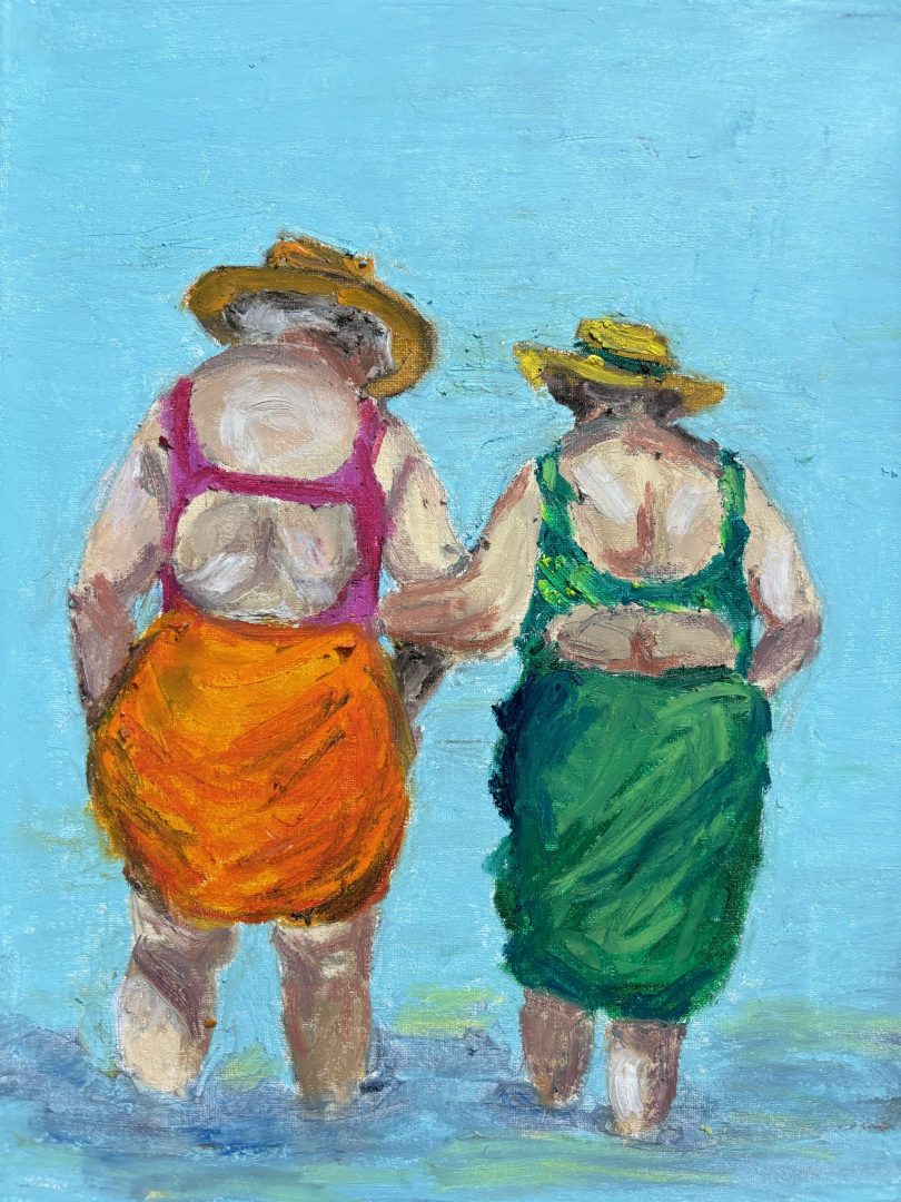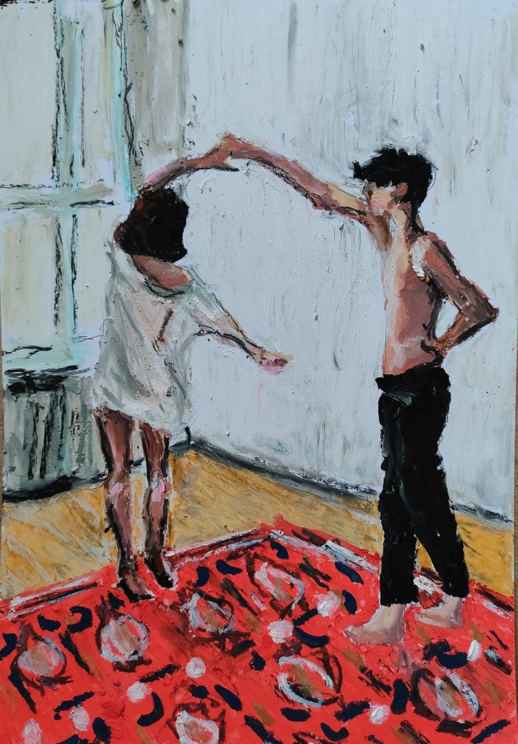 “Sono partita, come spesso accade ai bambini, con i pennarelli e le matite; ho poi cercato di capire l’uso della pittura a olio e ho sperimentato gli acrilici. Ho cambiato tanti supporti dalla carta al cartone, dalla tela al legno, da stoffe e materiali di riciclo alla plastica. Ho fatto ricerca e ho sperimentato molto anche con una punta di insofferenza, data probabilmente dall’impazienza di trovare il mio equilibrio espressivo. Solo di recente ho scoperto i pastelli a olio e la loro capacità di stratificazione e forza nei colori vividi. Così ho fatto diversi tentativi e infine ho trovato che con la carta e la tela liscia sono un’accoppiata vincente.”