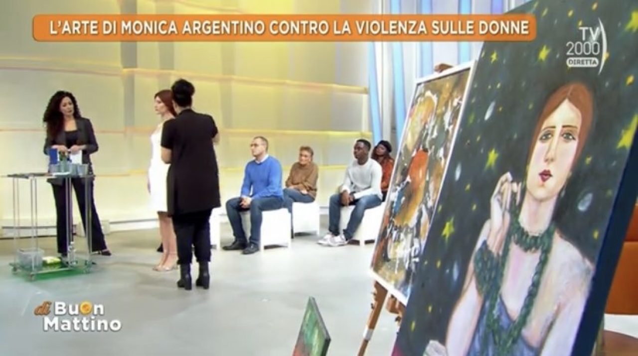 "Un arte di valori, simbolica e sociale, quella di Monica Argentino, stretta accanto a temi riproposti con una costante convinzione. Favola, sentimento, mito ma nel contempo realtà, dolore e violenza. E sono i colori i traghettatori di questa poesia incantatrice, nella quale capovolgimenti, affondi e voli si palesano per definire dimensioni atemporali e creare dei percorsi, indagati con un'angolazione metaforica.Gli aspetti sociali, la pittura di genere, la ricerca identitaria hanno priorità sulla lirica di Monica".