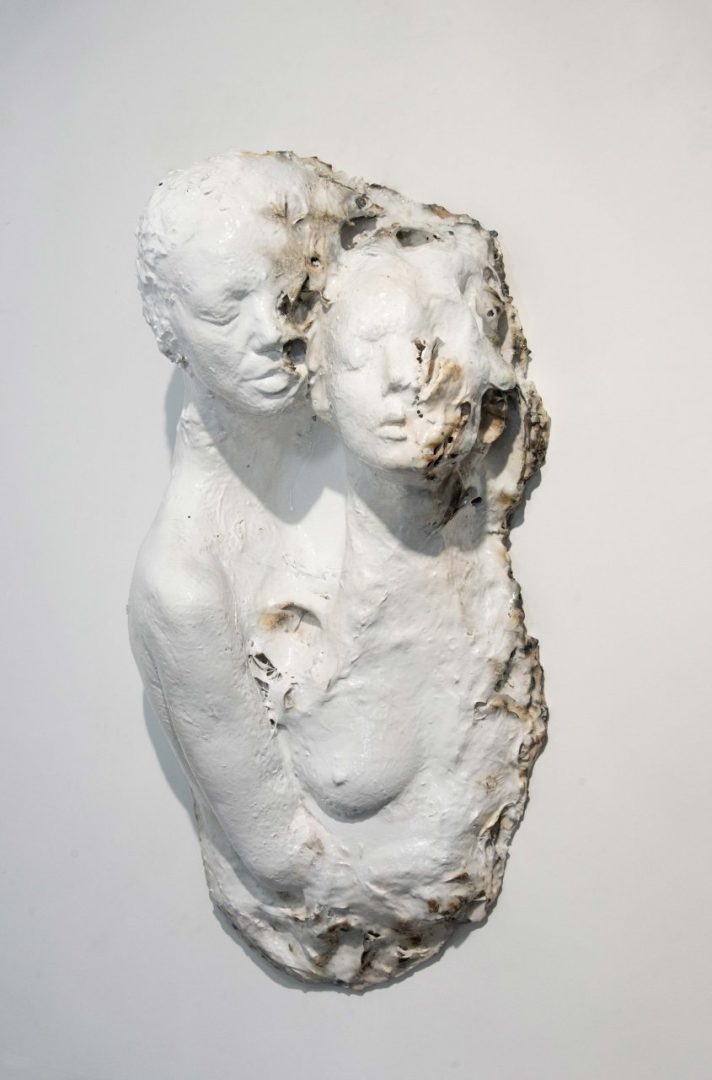 Sculture bianche e/o nere realizzate in tecnica mista partendo dal negativo di calchi di corpi e/o oggetti lavorati con resina, fiamma ossidrica, acrilico, ferro e materiali vari. L’artista parte sempre da un concetto filosofico/estetico a cui inizialmente da forma disegnando una serie di bozzetti stilizzati che rappresentano lo scheletro di partenza dell’opera stessa.