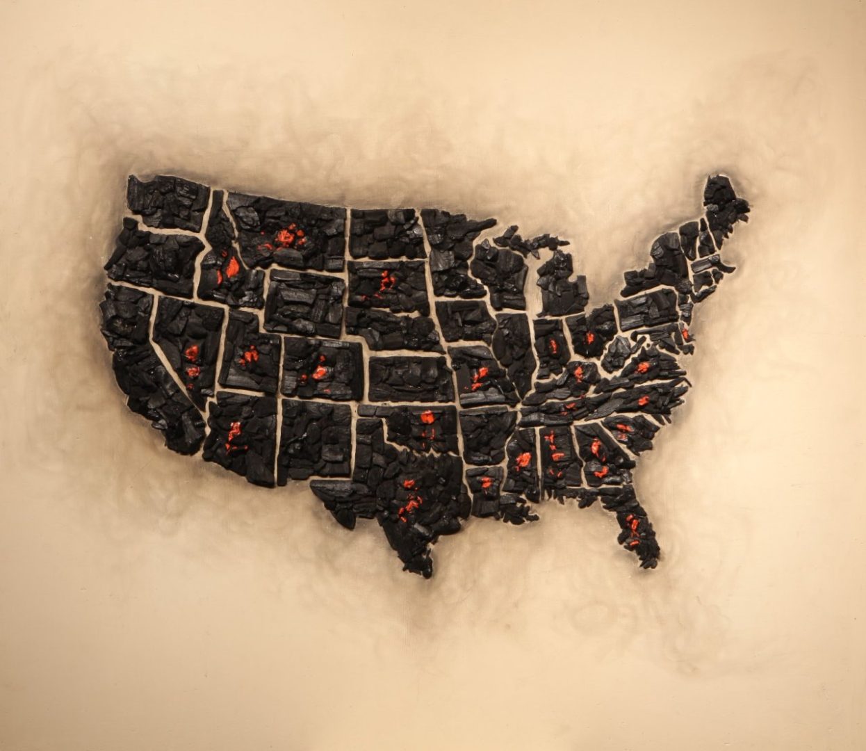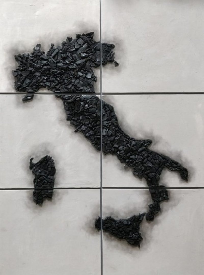 Negli ultimi anni l’artista dichiara lo stato di fragilità in cui versa il nostro paese. Da qui l’uso del carbone che simboleggia la malattia, la spaccatura, l’amarezza e l’inquinamento. Significativa, per questo passaggio, è stata una delle sue ultime opere: ”Terra mater” al Museo Macro la Pelanda di Roma nel maggio 2012, in occasione della fiera Roma contemporary e in collaborazione con Inside Art. Nella performance una modella, simbolo della purezza, è dipinta di blu e si muove tenendo in mano un globo terrestre le cui terre emerse sono realizzate con il carbone, a significare l’inquinamento ecologico e sociale che caratterizza la nostra epoca. Sempre nel 2012 espone ad Ancona al Museo della Mole Vanvitelliana realizzando una performance dedicata all’artista Gino De Dominicis.