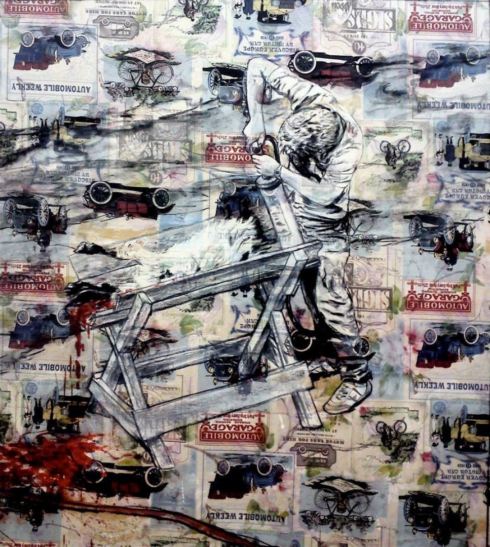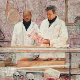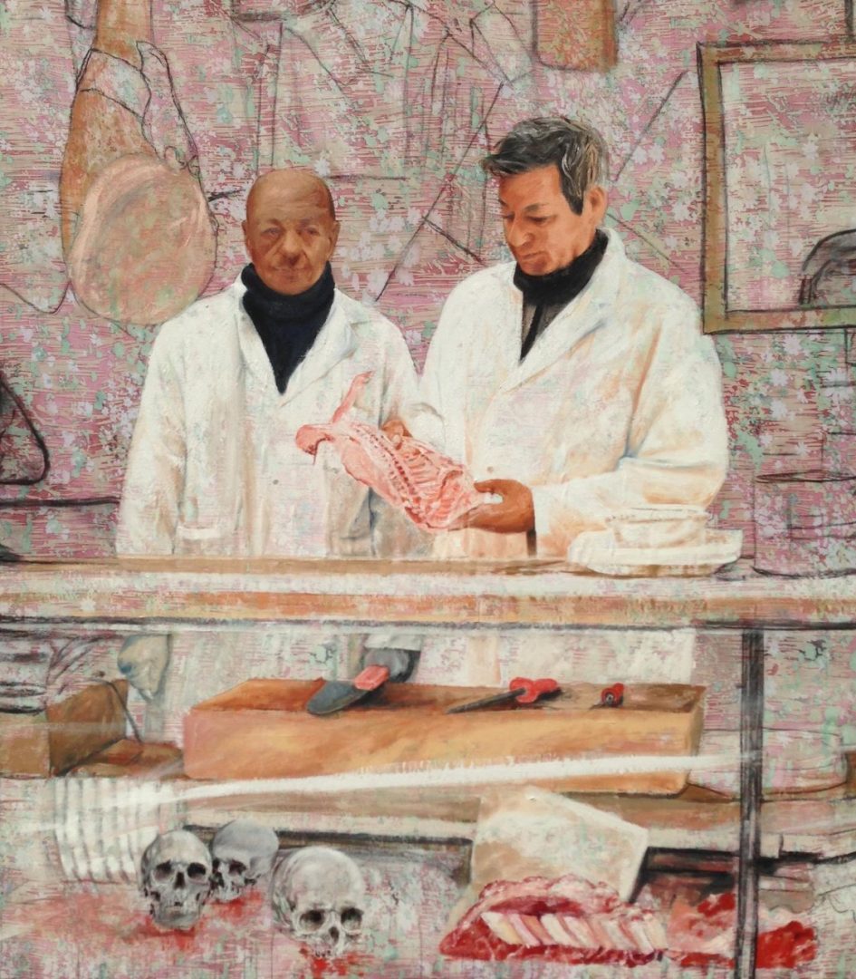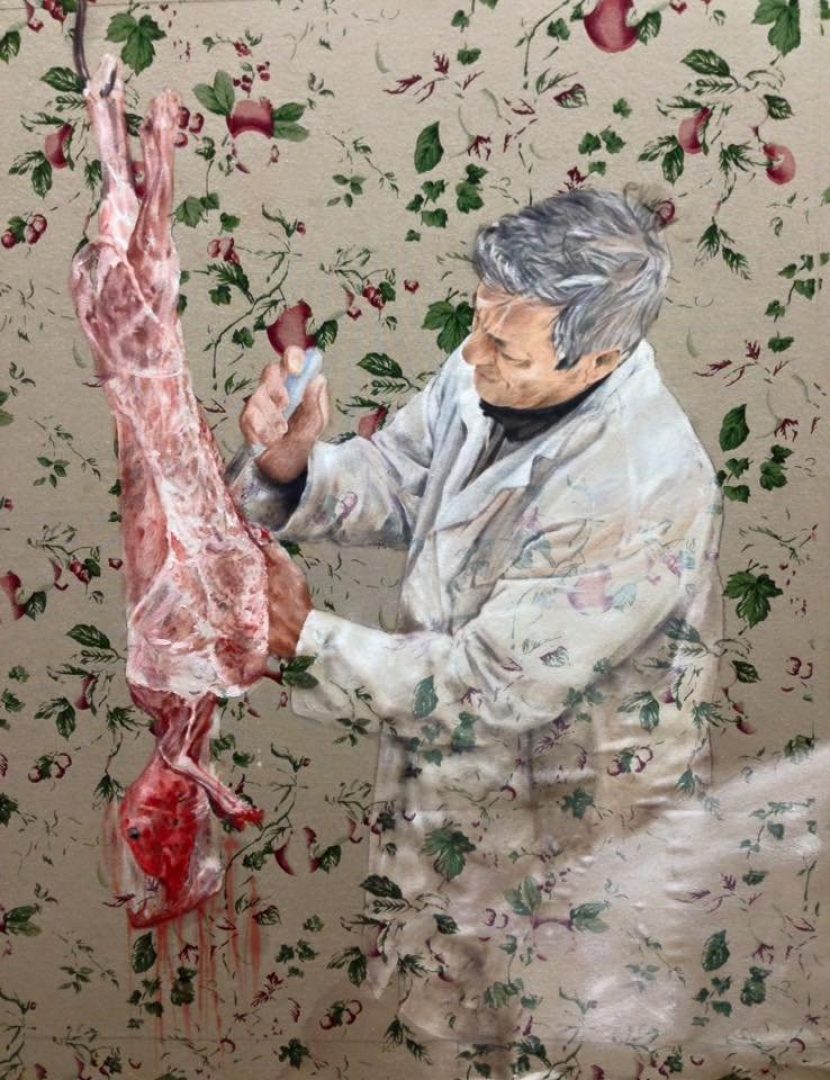 Dal 2014, dopo questa esperienza favolistica e sognante, l’artista ha voluto, a suo modo, riaprire gli occhi sul mondo affrontando uno dei filoni drammatici dell’ arte occidentale trattato ( per fare dei nomi) da Rembrandt, i Carracci, Chaïm Soutine, Picasso, Francis Bacon: la macelleria animale.