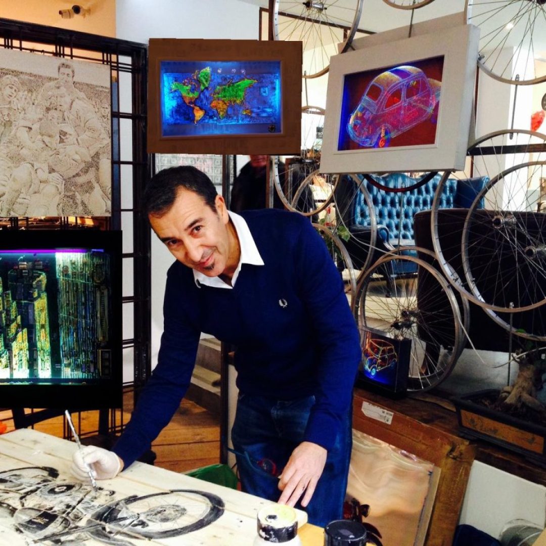 Ci sono storie di viaggi intorno al mondo che si raccontano con una siringa riempita ad acrilico; vi sono storie di vita vissuta che si raccontano con la resina, la colla, la fotografia, con frammenti di lattine, di cartelloni pubblicitari e perforatrici di diversi formati.