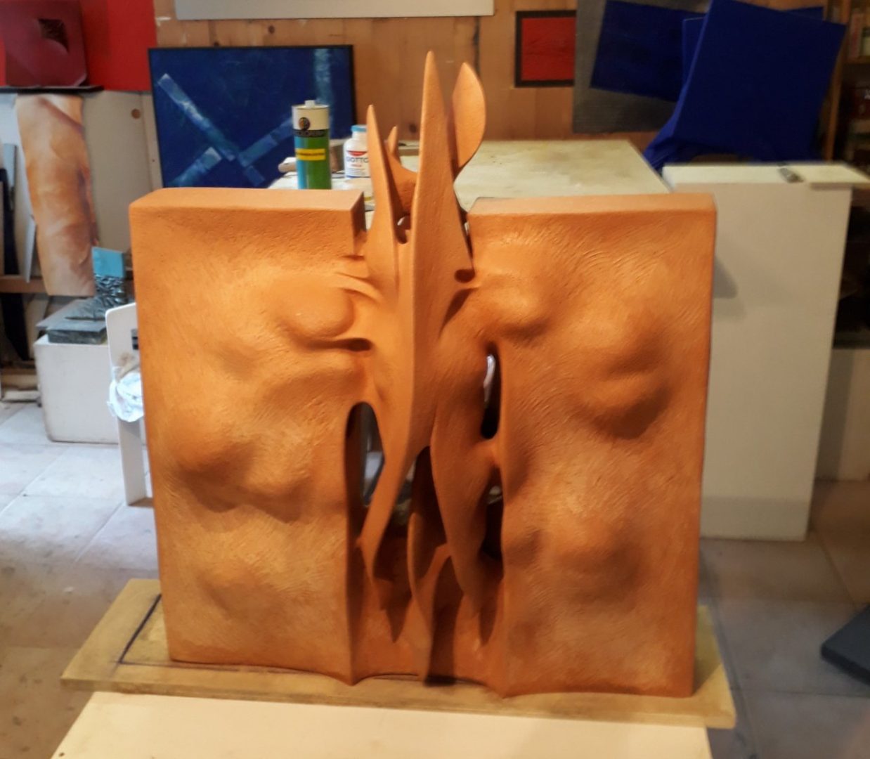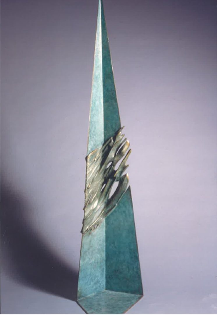 Il concetto primario della sua arte, già precisato nelle sue opere, fin dagli anni '70, diventa ora materia costante, con sempre rinnovata invenzione. Si tratta di un confronto, o meglio, della ricerca di un confronto tra forma organica e geometria essenziale, tra cui il quadrato e i1 cerchio, andando oltre, anche il duro e il molle, lo spigolo e la piega.