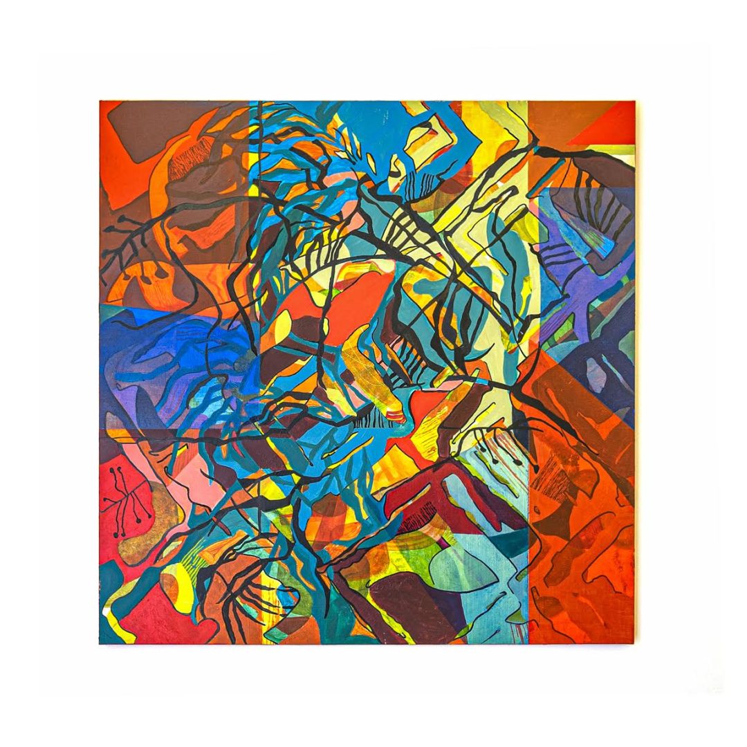 PV usa il colore come presenza vivida, esaltatrice della natura che trasfigura in una sorta di trama ad incastro dalla quale fa emergere forme e linee altamente espressive. Attraverso la sovrapposizione dei colori costruisce paesaggi emotivi in cui ogni tinta diventa memoria, ricerca e scoperta.