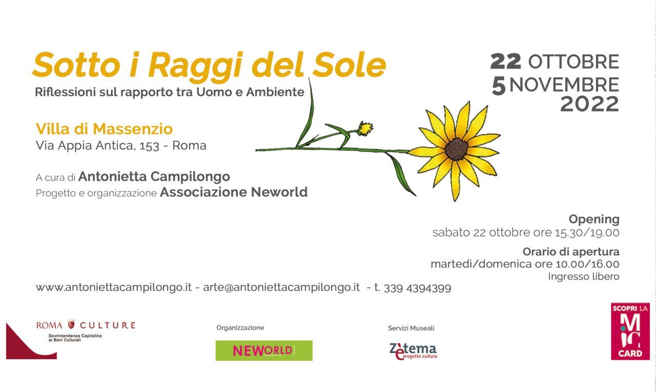 · Mausoleo di Romolo – Villa di Massenzio a Roma – Via Appia antica 153 - Mostra di arte contemporanea (multidisciplinare) Sotto i Raggi del Sole | Riflessioni sul rapporto tra Uomo e Ambiente - promossa da Roma Culture, Sovrintendenza Capitolina ai Beni Culturali, organizzazione Associazione Neworld “ETS”, servizi museali di Zètema Progetto Cultura. Dal 22 ottobre al 5 novembre 2022 - Inoltre sono state presentate due edizioni (VI- VII) di Nuvola Creativa Festival delle Arti.