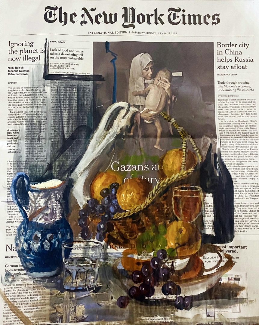 Dieci opere eseguite utilizzando come supporto i quotidiani nell'arco dell'ultimo anno di guerra. Cinese, Wang si è diplomata all'Accademia di Belle Arti di Shanghai e poi a quella di Roma e ha al suo attivo oltre 30 mostre personali.