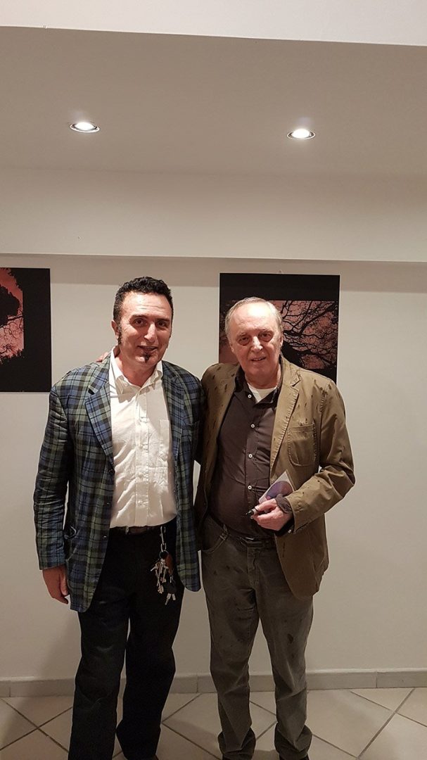 In questa foto, scattata al vernissage della personale di Claudio nella galleria di H.H.Lim ci sono gli ultimi momenti di un viaggio insieme che è durato cinquant'anni. Jannis aveva regalato un bancone bar a Claudio: un oggetto romantico e ironico, come era Claudio in fondo, fatto di corten e pipe di legno. Su quel bancone hanno vissuto le feste che si sono tenute nel seminterrato del suo studio. I due amici sono scomparsi a soli sei mesi di distanza l'uno dall'altro: il 16 febbraio Jannis e il 4 agosto Claudio. Non credo che sia un caso, viaggi così, fin dentro la vita, li fanno soltanto anime affini come questo romano e questo greco...