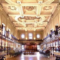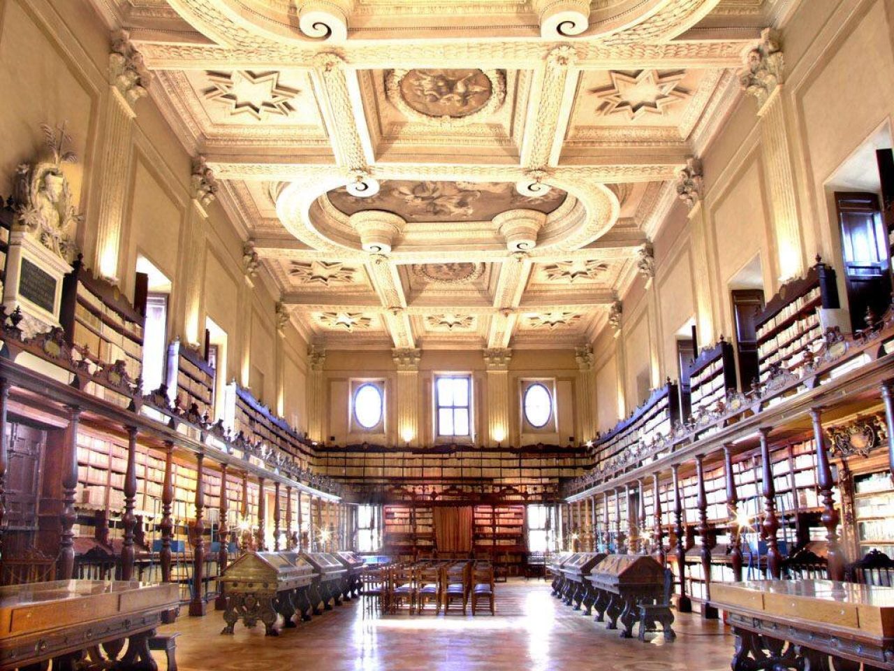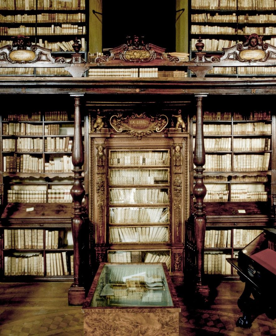 La nascita della Biblioteca Vallicelliana è strettamente collegata alla figura di Filippo Neri e alla Congregazione dell’Oratorio, istituita nel 1565 e riconosciuta ufficialmente da Gregorio XIII nel1575 con la bolla Copiosus in misericordia. Gli oratoriani avevano una particolare attenzione per i libri: in base alla Regola i pasti dovevano essere infatti accompagnati dalla lettura e dalla discussione di un testo religioso. La prima raccolta libraria è costituita dalle opere possedute da Filippo Neri, passate nel patrimonio della Congregazione alla sua morte, nel 1595. La Biblioteca Vallicelliana è già documentata nel 1581 grazie al lascito testamentario di Achille Stazio (Aquiles Estaço) a favore di Filippo Neri e della Congregazione dell’Oratorio: 1700 volumia stampa e 300 manoscritti. Ai primi due fondi si aggiungono successivamente altre donazioni, quali l’Archivio e parte della Biblioteca di S. Giovanni in Venere (1585); la biblioteca del cardinale Silvio Antoniano, i libri di Pierre Morin e quelli dell’oratoriano Giovenale Ancina, vescovo di Saluzzo (1604); i manoscritti provenienti da S. Eutizio, grazie all’intervento dell’abate Giacomo Crescenzi, e la raccolta del padre Antonio Gallonio, primo biografo di Filippo Neri (1605).La fase di maggiore attività culturale della comunità oratoriana nel XVII secolo è legata alla pubblicazione degli Annales Ecclesiastici di Cesare Baronio, della Roma sotterranea di Antonio Bosio curata da padre Antonio Severano e alla diffusione dell’Oratorio musicale, forma d’intrattenimento spirituale prediletto da Filippo Neri, che considerava la musica pescatrice di anime. Nel 1607, alla morte del cardinale Cesare Baronio, una parte della sua raccolta libraria viene ereditata dalla biblioteca della Congregazione; nel 1662 perviene il fondo di Virgilio Spada, costituito da una collezione di monete, minerali, maioliche e curiosità. Nel 1669 passa alla Biblioteca il fondo manoscritto dell’intellettuale greco Leone Allacci, custode della Biblioteca Vaticana, costituito da circa 237 manoscritti latini e greci. Successivamente vengono incamerati i lasciti dei padri oratoriani Odorico Rinaldi, Giacomo Laderchi, Giuseppe Bianchini, erede dello studioso Francesco Bianchini. Dopo essere stata amministrata dal Ministero della Pubblica istruzione la Biblioteca è oggi un Istituto periferico del Ministero dei Beni e delle Attività Culturali.