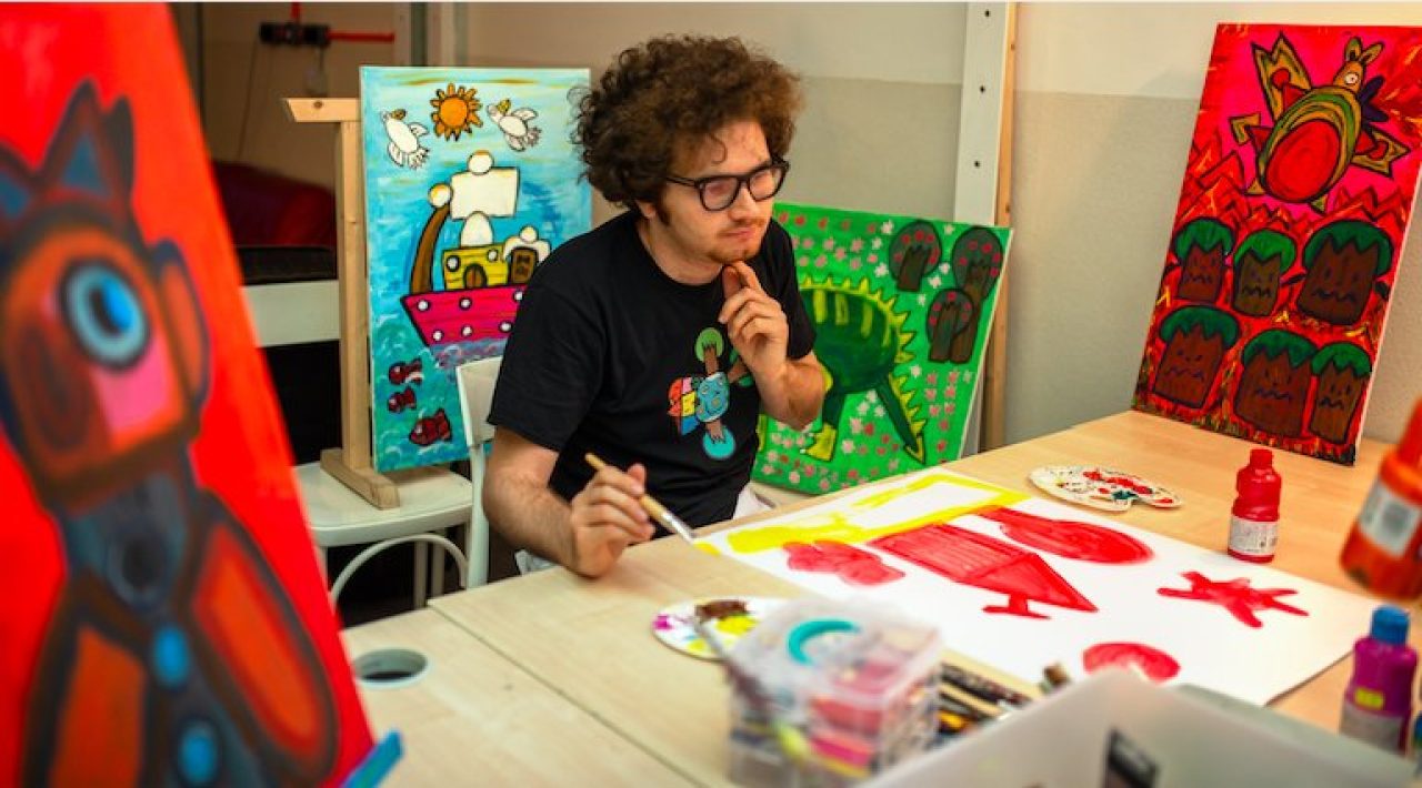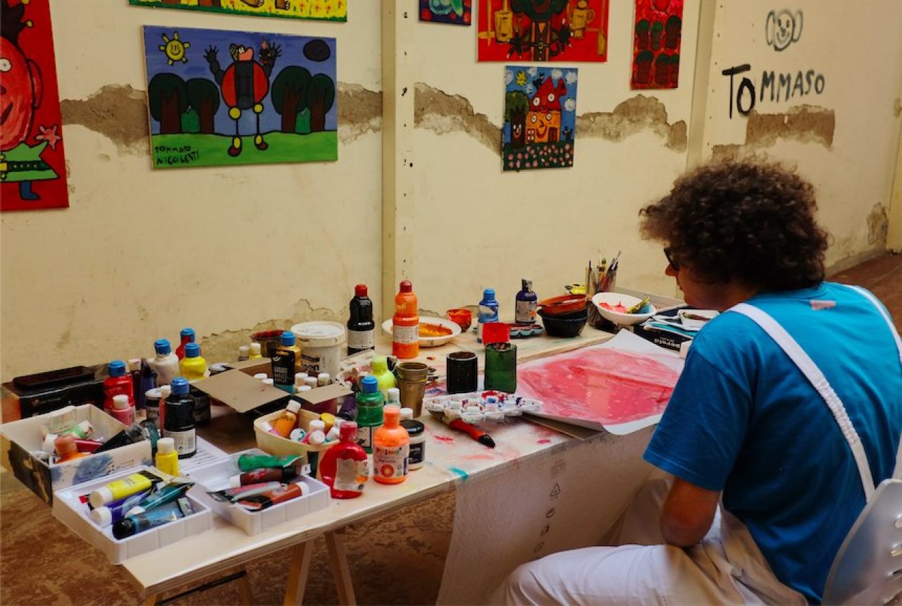 In questo luogo lavora e produce Tommaso Nicoletti (Tommy) artista neuro divergente; da qui comunica con colori e pennelli il suo universo di “cervello ribelle”.